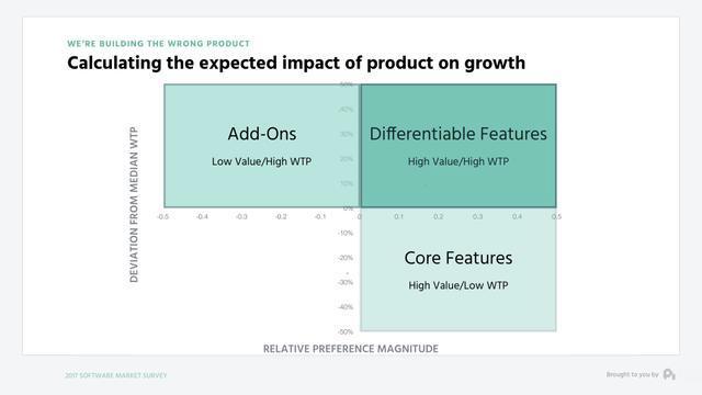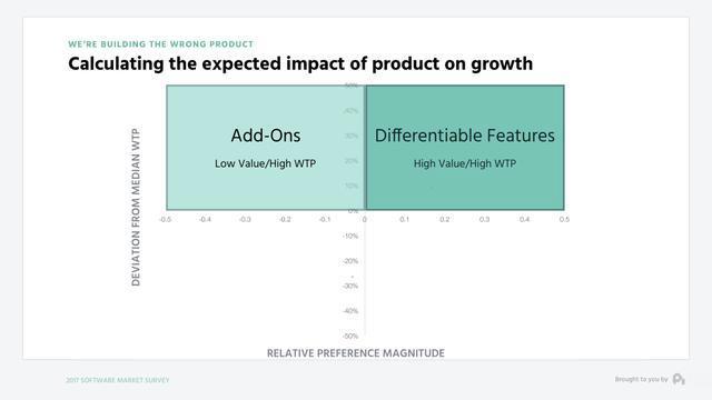 需要明确的是,这并不是说你正在构建的产品一点价值都没有。然而,考虑到市场上发生的所有事情,特性失去其额外价值的速度是极其令人不安的。造成这个现象的原因是,我们在构建产品时,缺少大量的客户调研和数据。